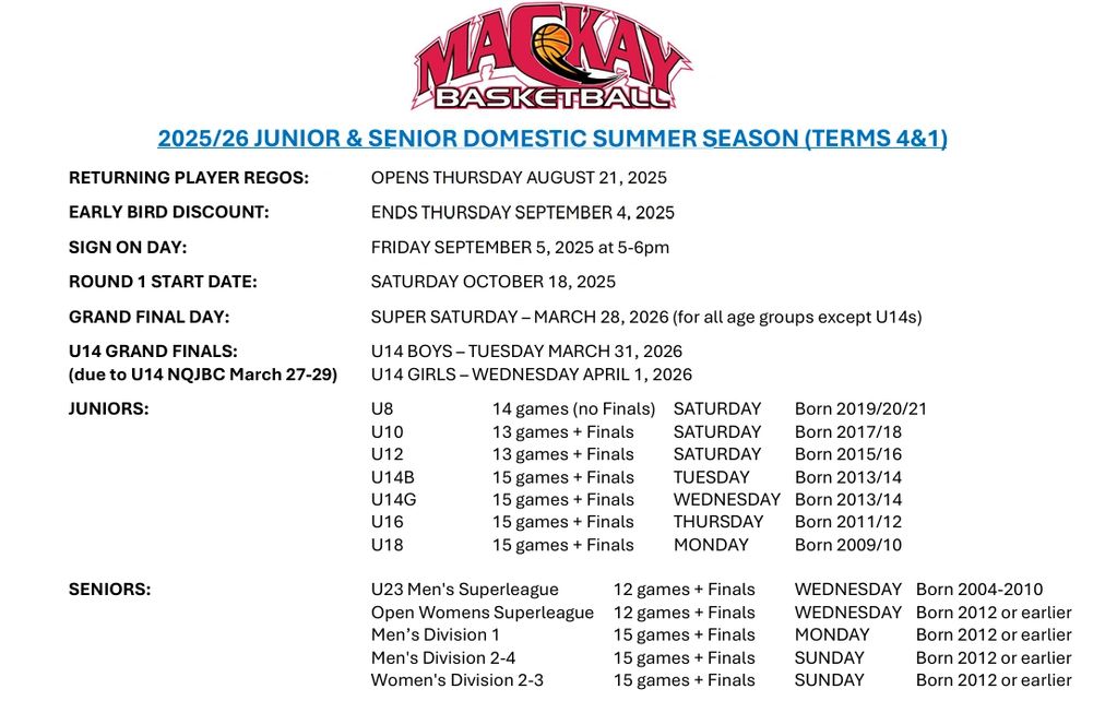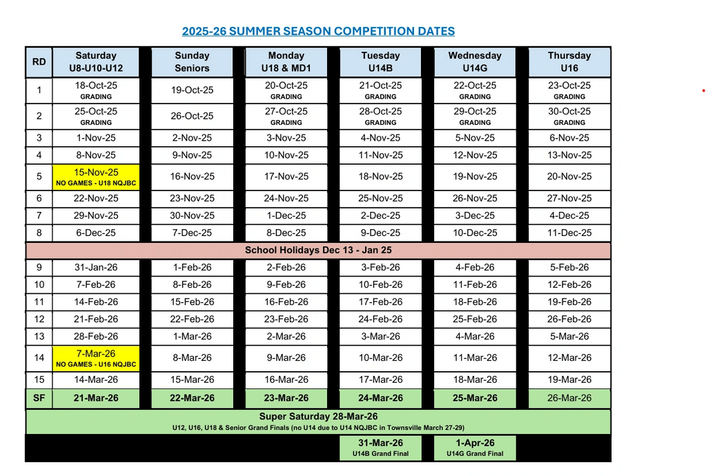 2025/26 Junior & Senior Domestic Summer Season (Terms 4&1)